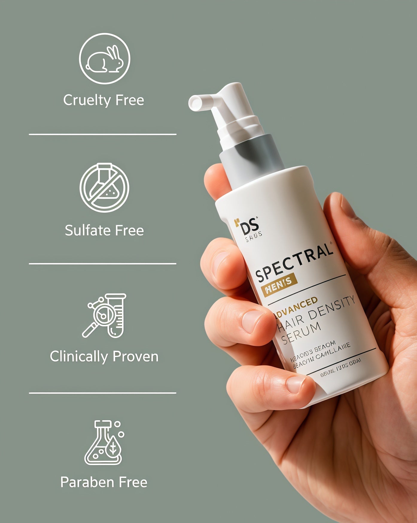 Spectral Men's formula contains novel key ingredients that work holistically through complementary pathways for healthier, fuller looking hair.