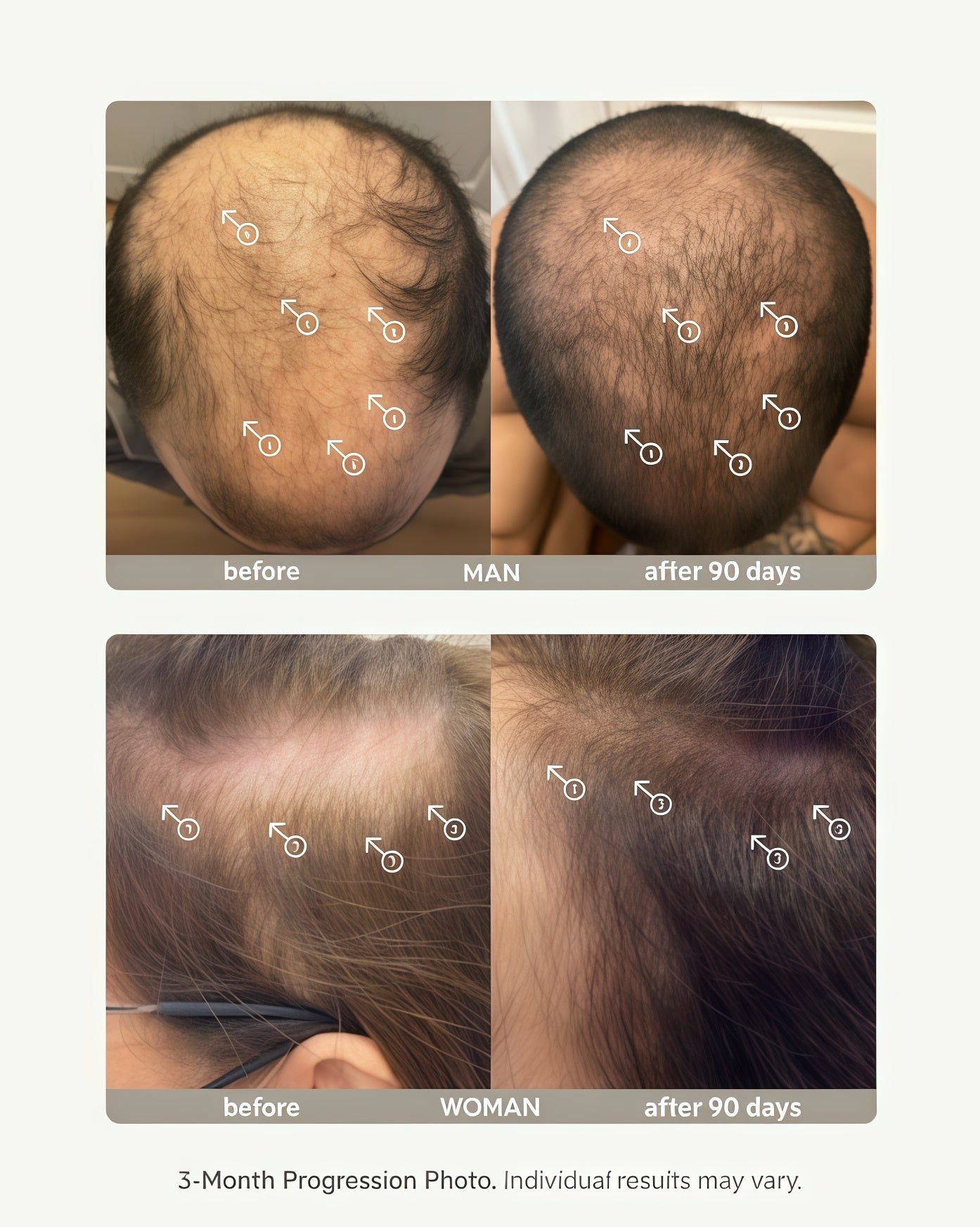 Fuller-looking hair in as soon as 90 days, with peak results around 180 days*